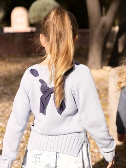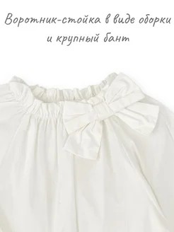 Школьная нарядная белая блузка с бантом и длинным рукавом
