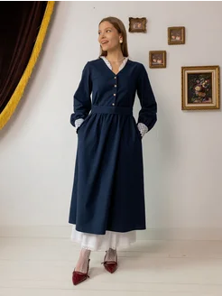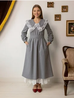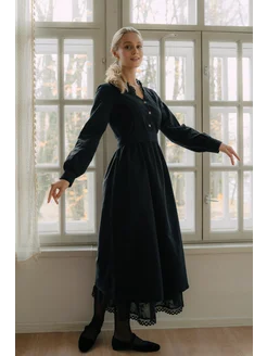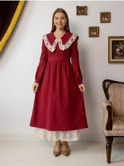 Платье винтажное нарядное с воротником бохо из фланели