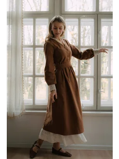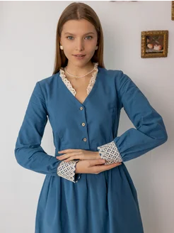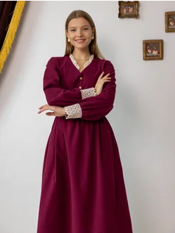 Платье винтажное теплое на пуговицах с кружевом из фланели