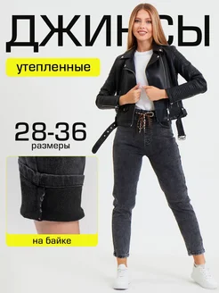 Джинсы утепленные с высокой посадкой бананы на резинке