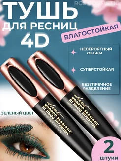 Зеленая тушь для ресниц водостойкая для объема 2шт