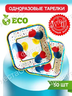 Одноразовая посуда для праздника тарелки 50 штук