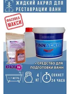 Жидкий акрил для ванны Финакрил 4 кг 170 см и средство