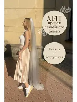 Фата с небольшим шлейфом однослойная на металлическом гребне
