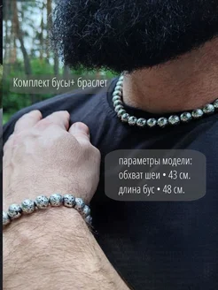 Мужские Бусы 48см с браслетом из Лавы