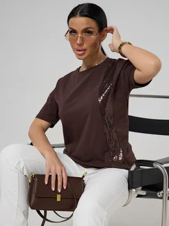 Футболка нарядная с пайетками больших размеров хлопок