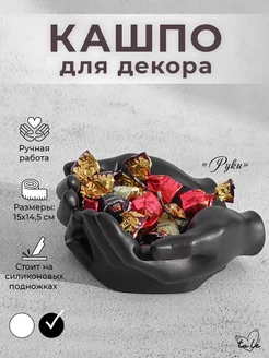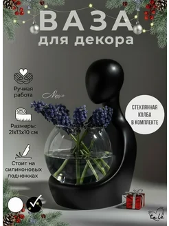 Ваза декоративная чёрная из гипса со стеклом для цветов