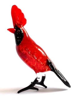 Кардинал стеклянный Фигурка птица из стекла ручной работы