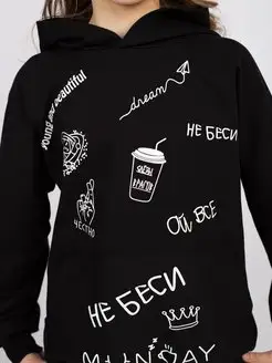 Худи с капюшоном и принтом без начеса подростковое