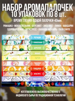 Благовония аромапалочки набор "Лечебный" десять ароматов