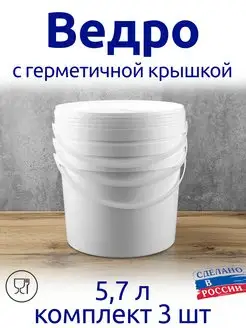 Ведро 5,7 л с герметичной крышкой белое 3 шт