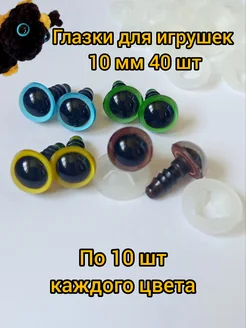 Глазки для игрушек 10 мм 40 шт безопасные с фиксатором
