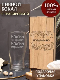 Стакан с надписью для мужчины под пиво Максим не бухает