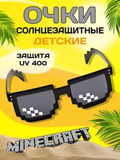 Очки подростковые солнечные Майнкрафт пиксельные черные