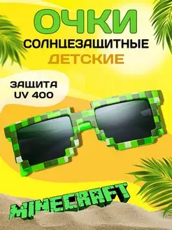 Очки солнцезащитные детские Майнкрафт пиксельные зеленые