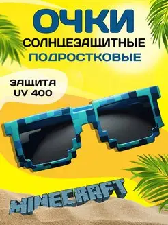 Очки подростковые солнечные Майнкрафт пиксельные синие