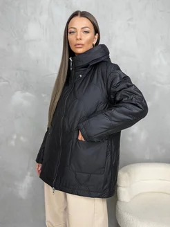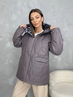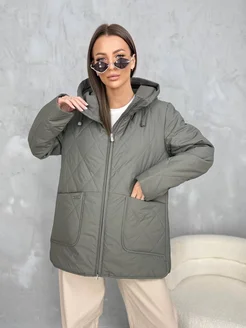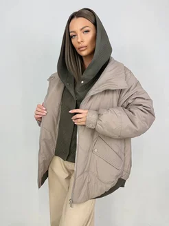 Куртка демисезонная с капюшоном на молнии оверсайз