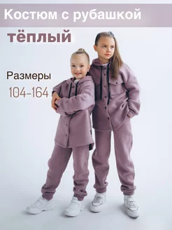 Спортивный костюм для девочки с рубашкой теплый с начесом