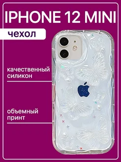 Чехол iphone 12 mini с объемным принтом силиконовый бабочки