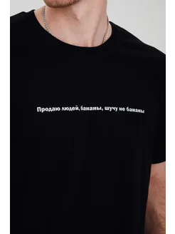 Футболка с принтом мем продаю людей, бананы, шучу не бананы