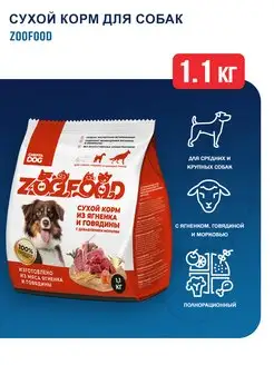 Сухой корм для средних крупных собак ягненок говядина 1,1 кг