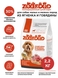 Сухой корм для собак мелких пород, вкус- говядина и ягненок