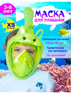 Маска для плавания и ныряния (снорклинга) детская с трубкой