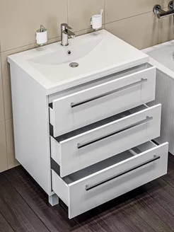 Тумба под раковину в ванную напольная 75 см белая У51039