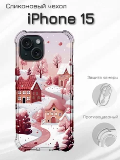 Чехол на iPhone 15 с принтом зима Новый год снег