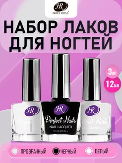 Лак для ногтей черный белый прозрачный набор 3 шт