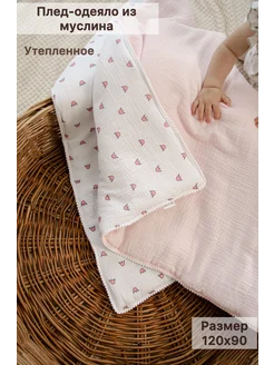 Плед для новорожденных утепленный муслиновый для детей