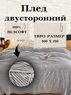 Плед 200х220 см евро теплое покрывало на кровать диван в дом