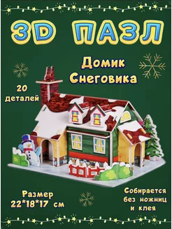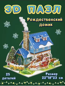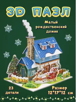 Новогодний пазл 3д из картона Пряничный домик Рождество