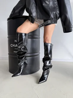 Ботфорты на каблуке шпильке сапоги чулки стрейч высокие