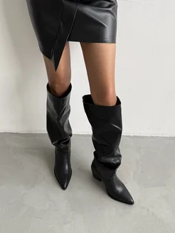 Сапоги трубы на низком каблуке с широким голенищем демисезон