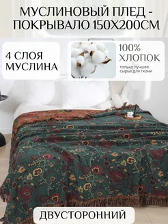 Муслиновый плед - покрывало 150х200см 100% хлопок