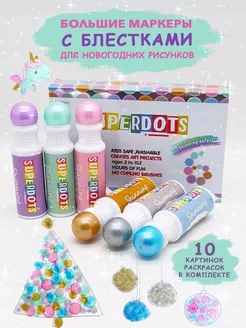 Маркеры для творчества большие точечные с блестками 6 цветов