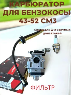 Карбюратор бензокосы 43-52 свеча L7T + фильтр + свеча 7LT