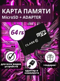 Карта памяти micro sd 64Gb 10 Class