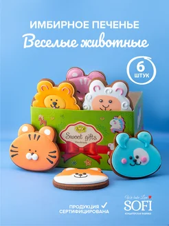 Печенье имбирное "Веселые животные" 6 штук 360 гр