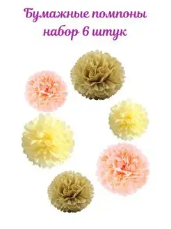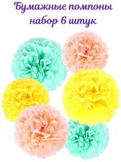 Бумажные помпоны для декора праздника и фотозоны (набор 6шт)