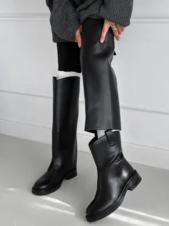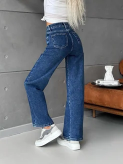 Джинсы прямые широкие синие трубы с высокой посадкой осенние