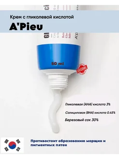 Крем для лица с AHA и BHA кислотами A pieu Glycolic Acid
