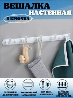 Вешалка настенная для одежды в ванную для полотенец крючки