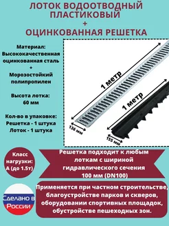 Лоток водоотводный DN100 H60, пластиковый с решеткой, 1 метр