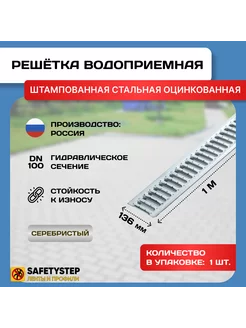 Решётка стальная оцинкованная DN100, 136мм х 1000мм, 1 штука