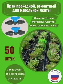 Кран проходной, ремонтный для капельной ленты, 50 штук, 16мм