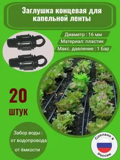 Заглушка концевая для ленты - 20 штук, 16мм, капельный полив