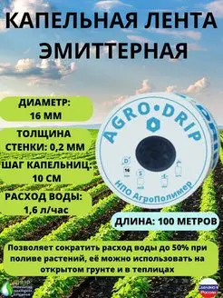 Лента для капельного полива, 100 метров, шаг капельниц 10 см