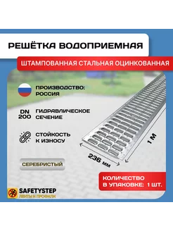 Решётка штампованная стальная оцинк, 236 мм х 1000 мм, 1 шт